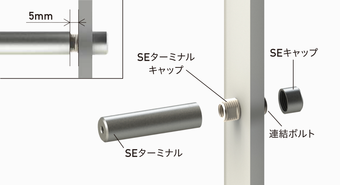 - 注意 SEターミナルは装飾用です。危険な箇所への設置や転落防止用としての使用はお避けください。