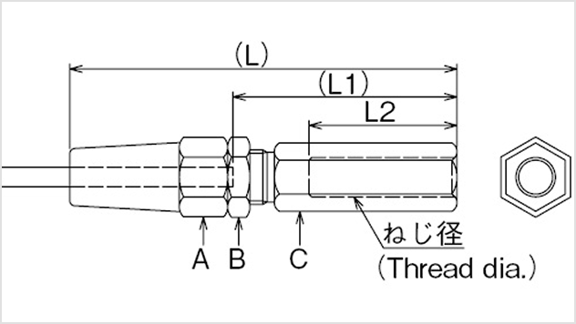 無限に広がる豊富なバリエーションターミナル金具は、ステンレスワイヤーロープと組み合わせて使用します。